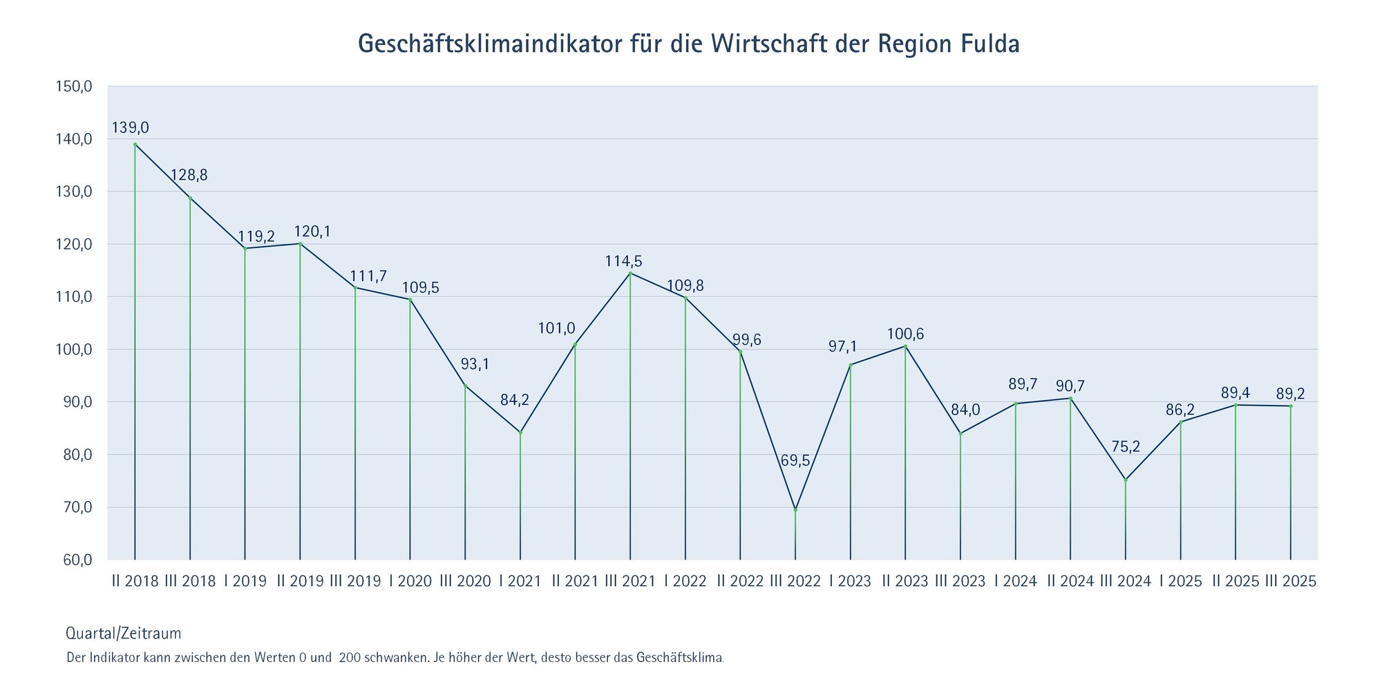 „Es ist weiter kein Aufbruch in Sicht. Der Geschäftsklimaindex ist einmal mehr im rezessiven Bereich. Die konjunkturelle Talfahrt geht ins nunmehr vierte Jahr. Der Herbst der Reformen der Bundesregierung spiegelt sich bislang nicht in den Konjunkturdaten wider“, kommentiert Michael Konow, Hauptgeschäftsführer der Industrie- und Handelskammer Fulda, die aktuellen Ergebnisse der dritten Konjunkturumfrage 2025.